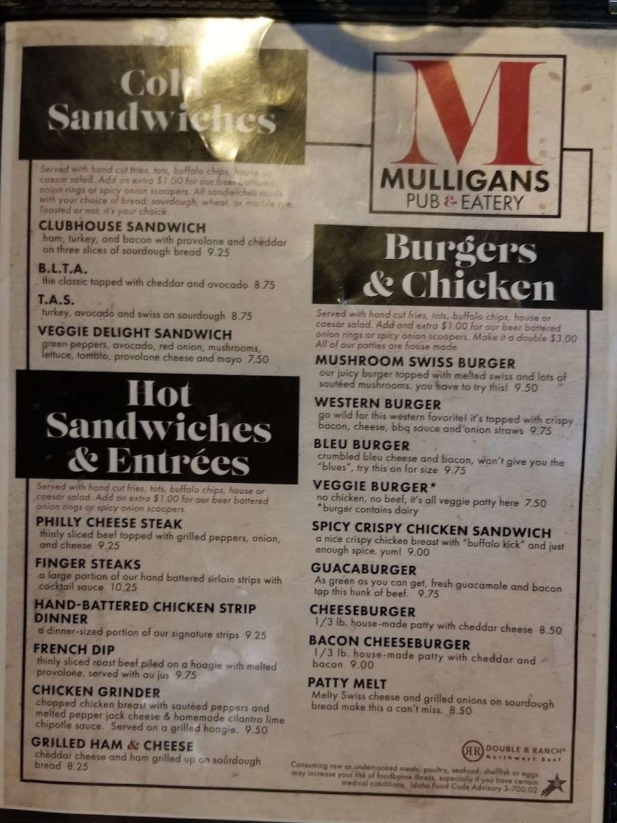 Welcome to Mulligans' Pub & Eatery, a beloved local hangout nestled in Boise, Idaho. Known for its relaxed atmosphere, Mulligans' offers an inviting space adorned with unique décor, including a bar counter lacquered with PBR beer caps. The menu features an appealing selection of pub favorites, with highlights such as delicious corn dogs that patrons rave about.